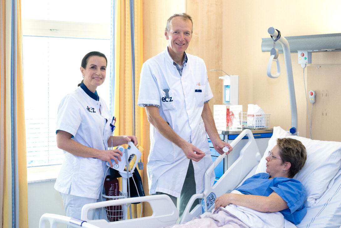 ‘Deze ingreep werd op sommige plekken al op deze manier gedaan’, zegt cardioloog dr. Harm Muntinga. ‘En nu zijn wij in het ETZ daar ook mee begonnen.’ Verpleegkundige Cindy van Dijke staat deze patiënten in de dagbehandeling bij. ‘Zaak is dat we de mensen goed informeren, zodat ze vooraf weten wat hen te wachten staat en wat ze kunnen verwachten als ze weer thuis zijn.’